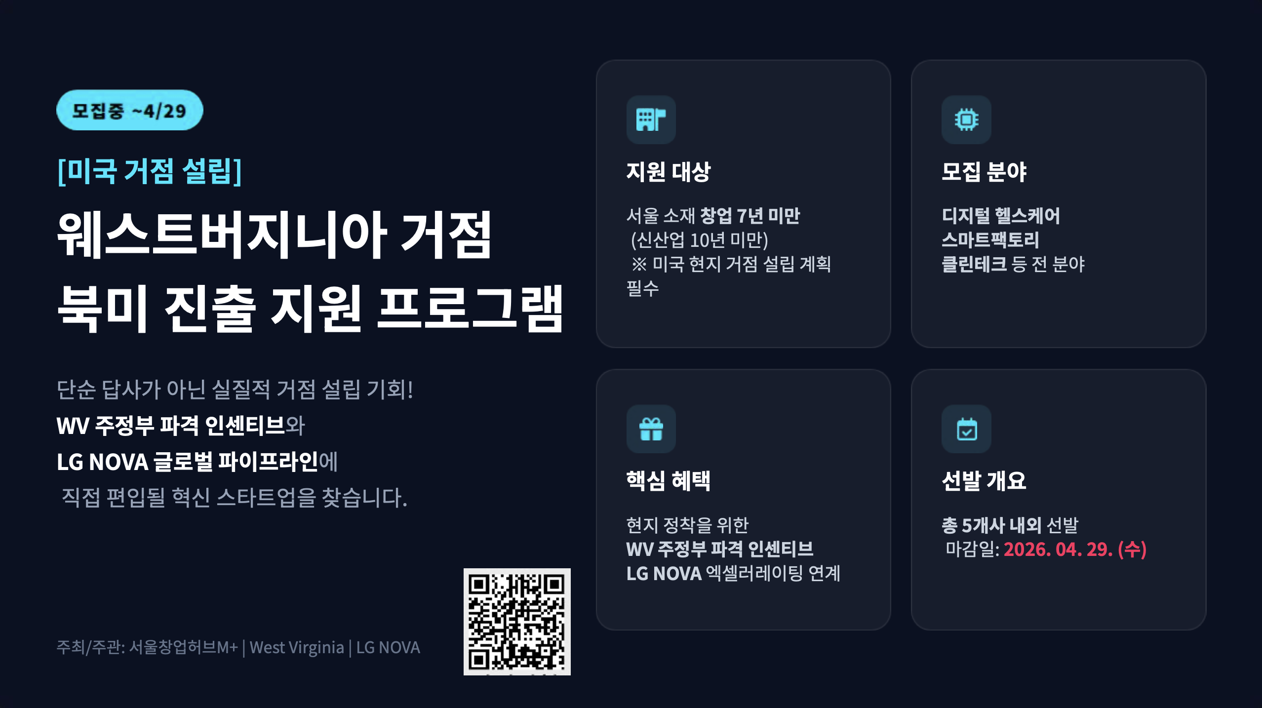 WV 주정부 인센티브 + LG NOVA 연계! '북미 진출 패스트트랙' 스타트업 모집 (~4/29)